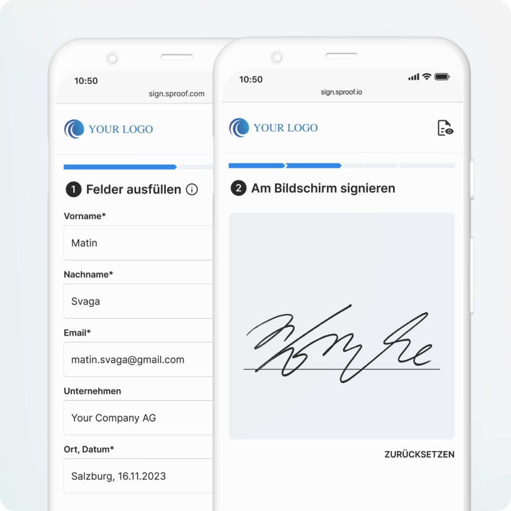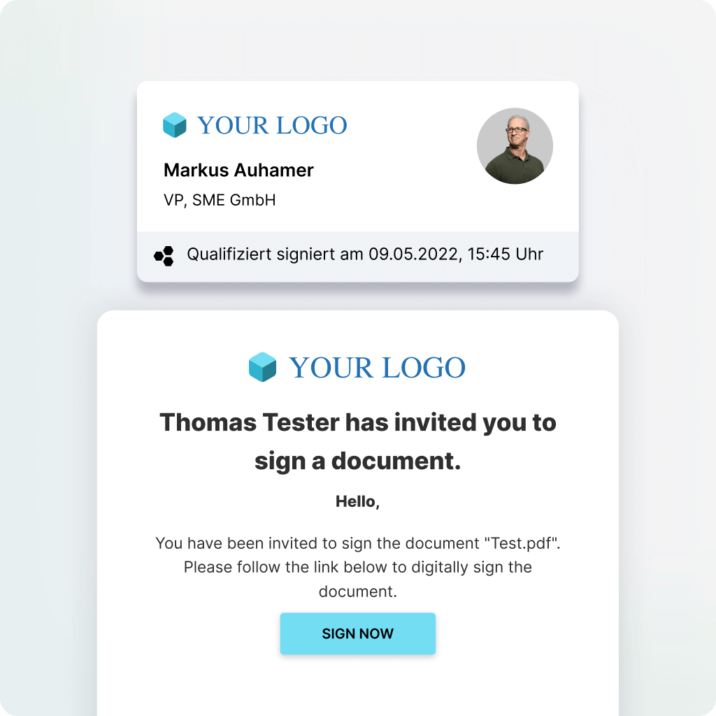 - In Corporate Branding: User:innen signieren in gewohntem Branding ohne die gewohnte Software Applikation zu verlassen.