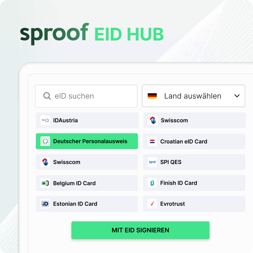 Schnittstelle zu den wichtigsten eID-Anbieter für qualifizierte elektronische Signaturen und sichere Identitätsprüfungen länderspezifisch für ganz Europa.