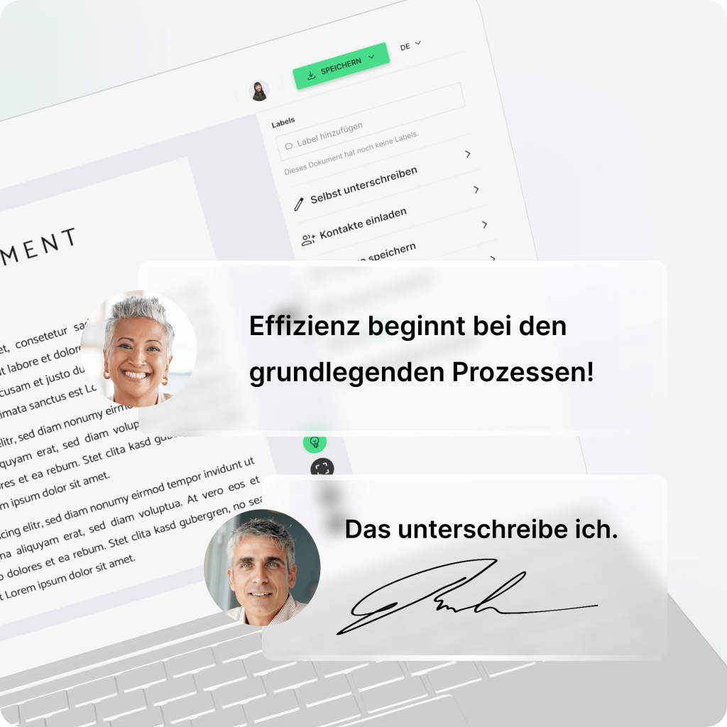 - Analog geführte Vertragsprozesse bedeuten Papier- und Druckkosten, Personalaufwand, überflüssige Termine & Reisen. Sowohl ökonomisch als auch ökologisch werden messbar Ressourcen verschwendet. Evaluieren Sie selbst in 3 Minuten das Potential Ihres Anwendungsfalles.